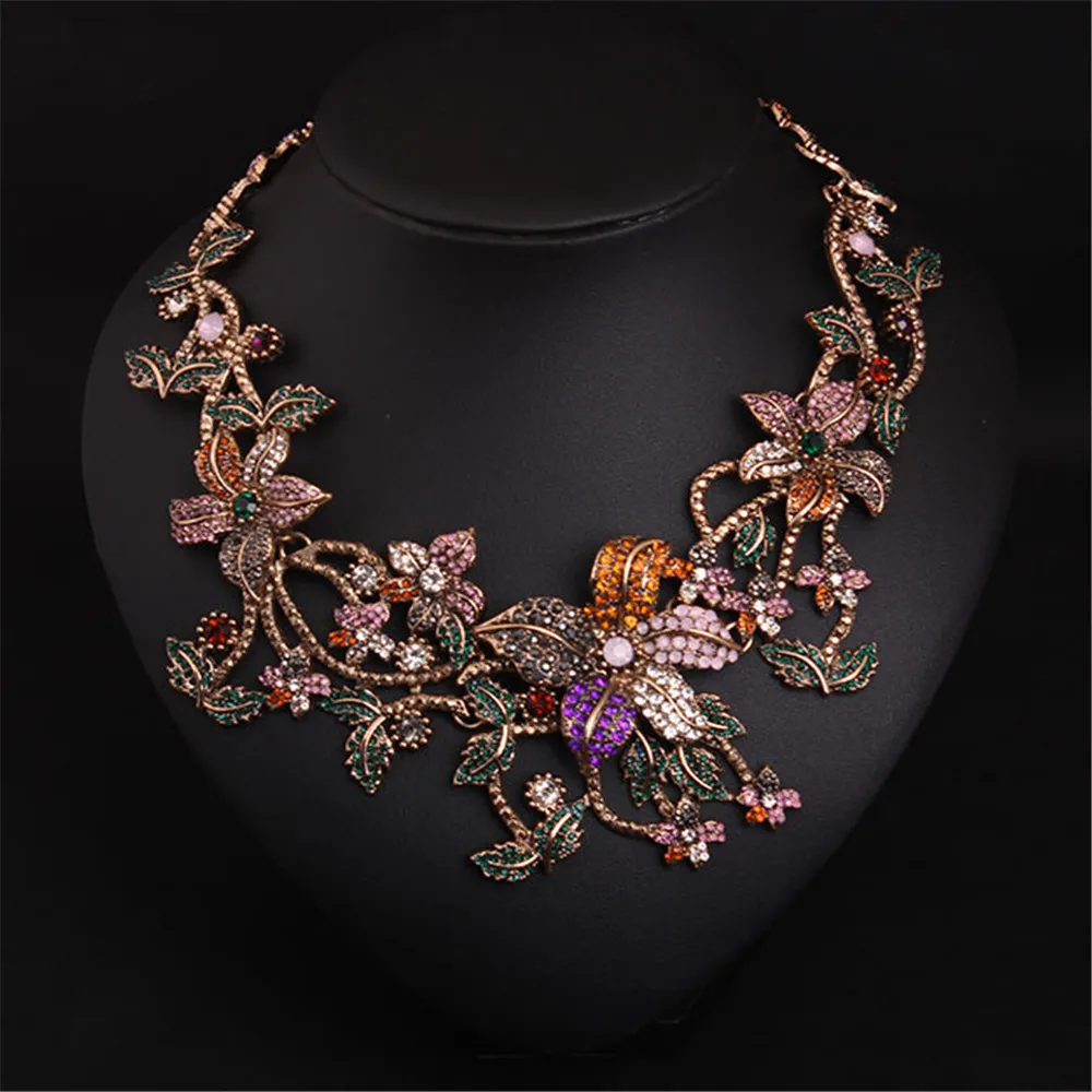 Luxurious Retro Inlaid Crystal Flower Chokers Necklace Elegant Female Dresses Accessories Wedding B