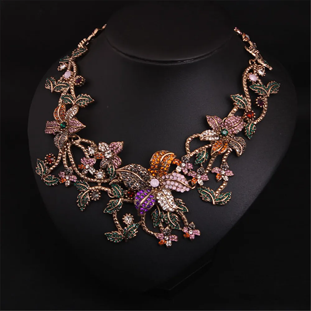 Best Luxurious Retro Inlaid Crystal Flower Chokers Necklace Elegant Female Dresses Accessories Wedding B